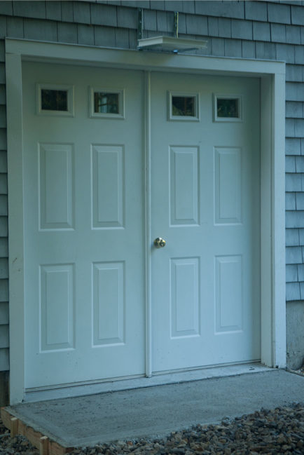 RP2 DoorGuard configuration provides high security detection of exit/entry of human ID and RuBee enabled assets. The RPM antenna in this installation is placed over top of door, with a mat antenna embedded in the concrete slab. The red lines indicate two antennas in this DoorGuard installation.