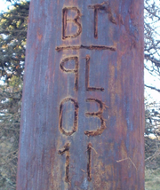 The next line of the brand is usually the poles the ANSI Class used to determine maximum load (this number ranges from 10 to H6 with the smaller the number the greater the strength. The poles height (from butt to top) in 5 foot increments is usually to the right of the class separated by a hyphen although it is not uncommon for older brands to have the height on a separate line. The pole brand is sometimes an aluminum tag affixed by nail to the pole. Prior to the practice of branding many utilities would set a 2 to 4 digit date nail into the pole upon installation. These nails are considered extremely valuable to collectors (Please note that date nails and all other attachments on a utility pole are private property and removal/theft is a felony), with older dates being more valuable and unique markings such as the utilities name also increasing the value. The practice of date nails went out of general use during WWII due to war shortages. However, the practice is still used by a few utilities.
